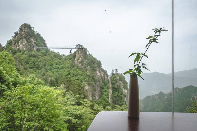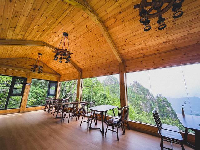 当然最让人爱的就是面朝山崖的超大落地窗,正对着网红玻璃桥和山间景色,如果是恐高的人可千万别靠近窗户坐。