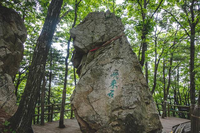 老界岭的爬山路线是一条不走回头路的8字,一路可以看到各式各样的奇异景色。比如这个飞来石,是不是很像天狗的模样!