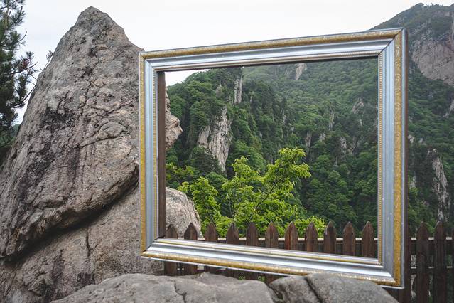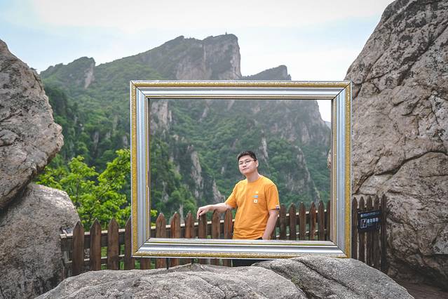 同样继续往前走还有一个地方有个画框摆设,也是透过画框看对面山峰的景色。