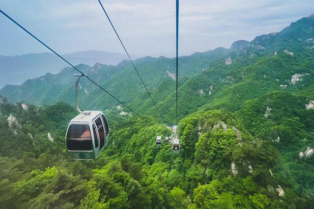 我们一早从山庄的小木屋出发,直接到索道那里乘坐索道上山。索道全长1000多米,单程下来有10分钟多。