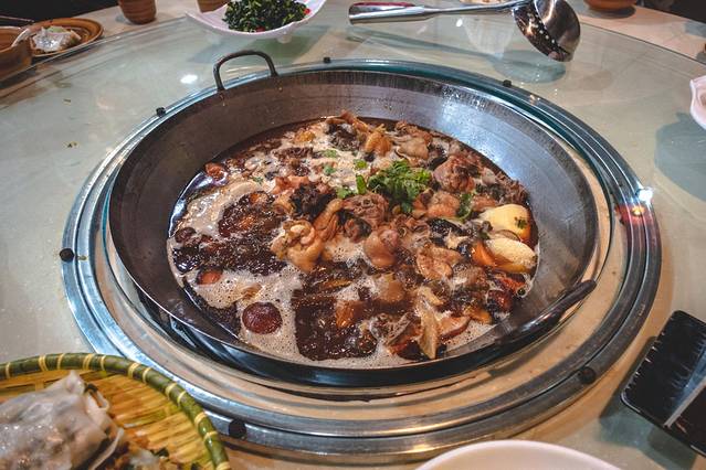 在山庄里吃什么,不仅有自助餐厅,而且还可以去森林吧餐厅享用一顿食材满满的地锅,有鸡块和排骨,吃完了还可以再往里面加蔬菜等配料煮着吃。