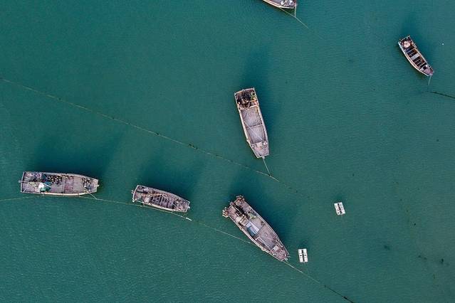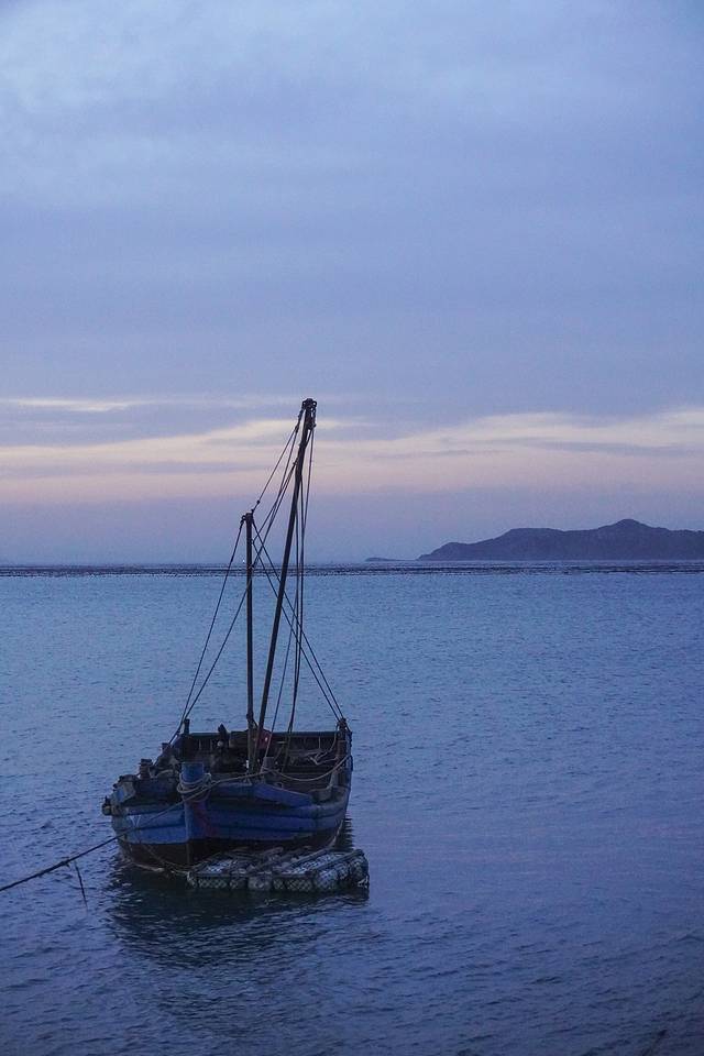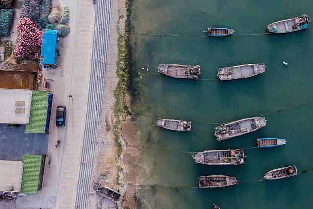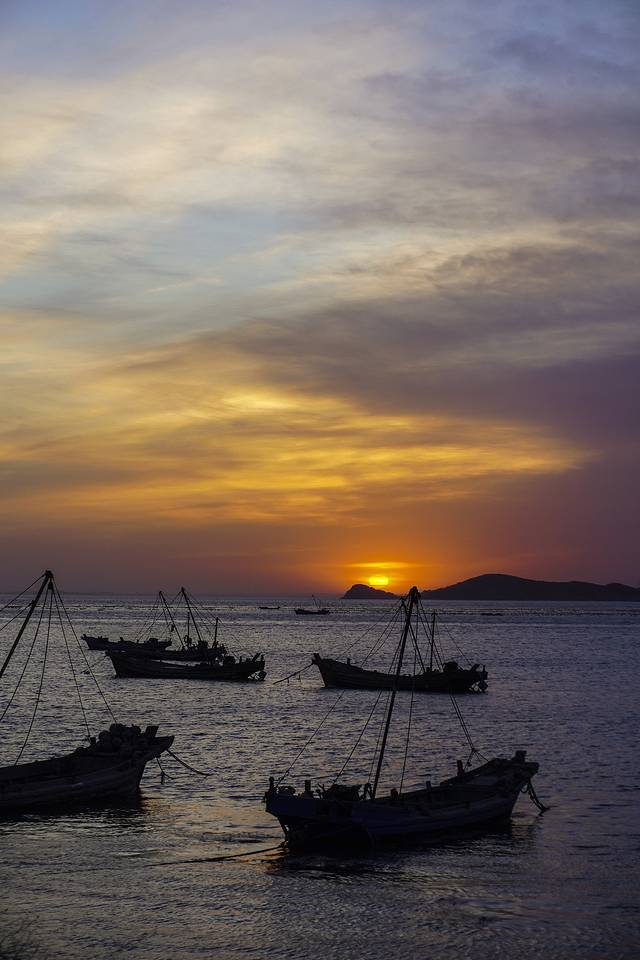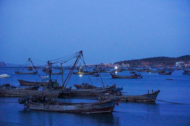 密密麻麻的渔船静静地散落在海湾中,岛上多是渔民自家经营的民宿,旅游开发较少。