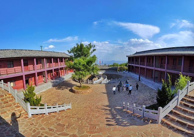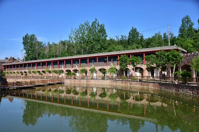 这里有一间庙,庙里有供奉着神像,院子里有八卦词,应该有风水的设计。
