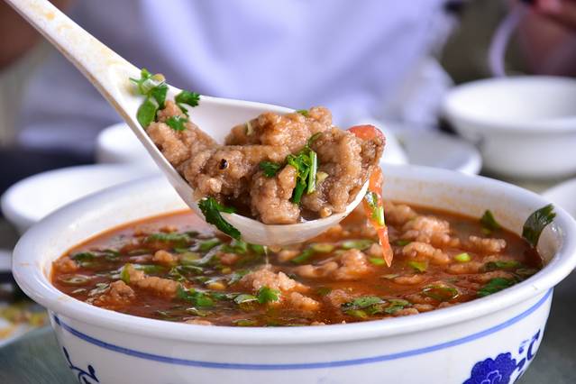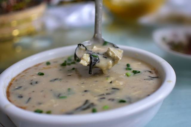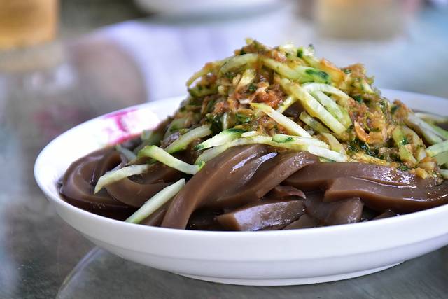 芝麻叶炖豆腐,一大碗糊糊,颜值不怎样,味道特别好呀,小伙伴们都来一碗,一片赞叹!这郑州菜就把我们给收买了。