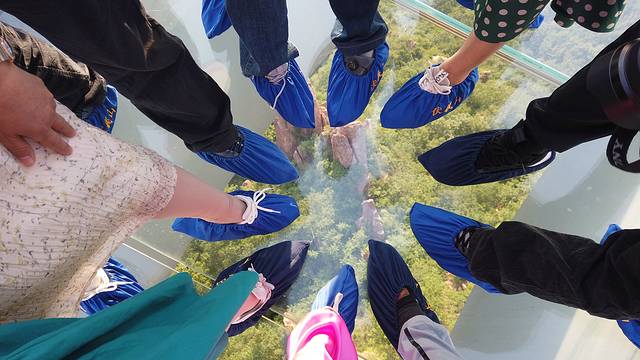 伏羲山有一个悬空玻璃环廊,和小伙伴们去上面耍,大家都玩high了,要来一个脚的合影,玻璃下面可是深渊呀,真的是人多敢情就不怕了。