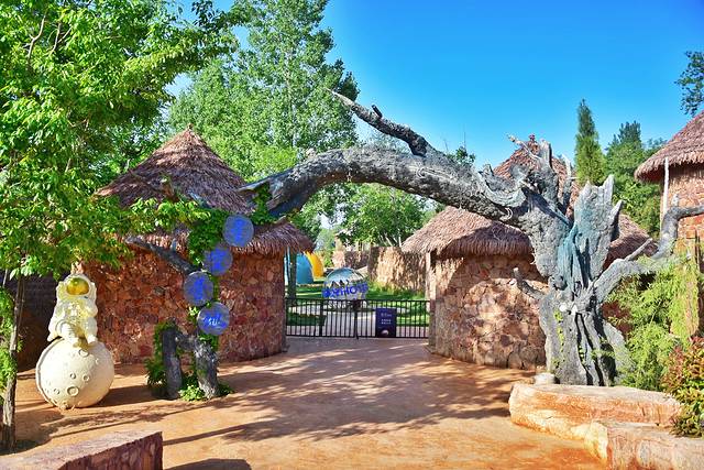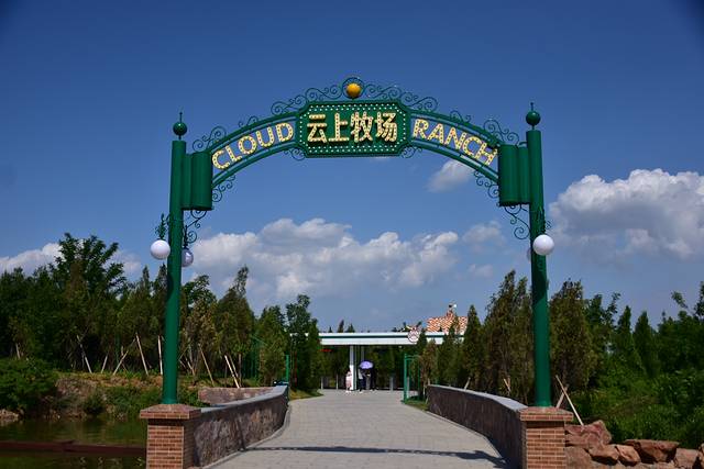 穿过生灵岛,迈进云上牧场的大门,一个高高的卡通拱门,在蓝天的映衬下,就像步入了一个卡通世界哦。