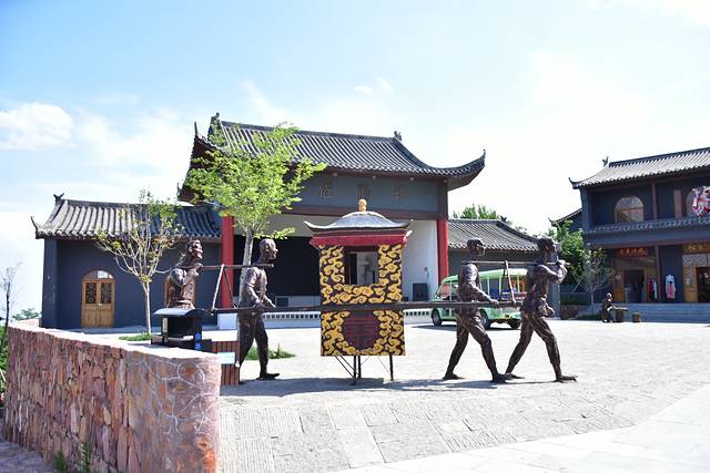 还有铜人轿夫抬轿,很适合游客互动打卡拍照。