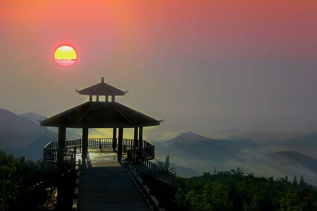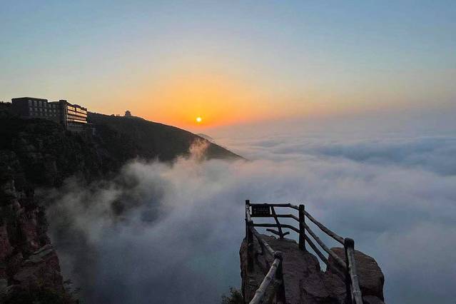 小伙伴有提议看日出,不过我晚上1点才睡,刷手机刷了很久啊,凌晨4点真的起不来,还是等到7:30阳光把我叫醒,小伙伴分享了美美的日出和云海照片,果然是早起的鸟儿有虫吃,赖床的懒虫我就错过了这么美好的日出,这样的云海还真的是可遇不可求,要前晚下了雨才会有云海的。分享一下小伙伴拍的美图,伏羲山的美丽日出就在这里。我想对喜欢日出的小伙伴说,住在景区里边,早上看日出,并不需要走多远,不到1公里就可以了,看完还可以回去补觉呢!
