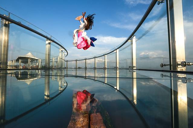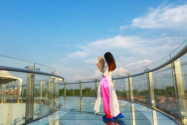 趁着游客不多,在玻璃环廊上走了好几圈,这个廊道也真是宽,玻璃透明度相当好,明知道玻璃不会破,但是还是紧张的脚心不断出汗。
