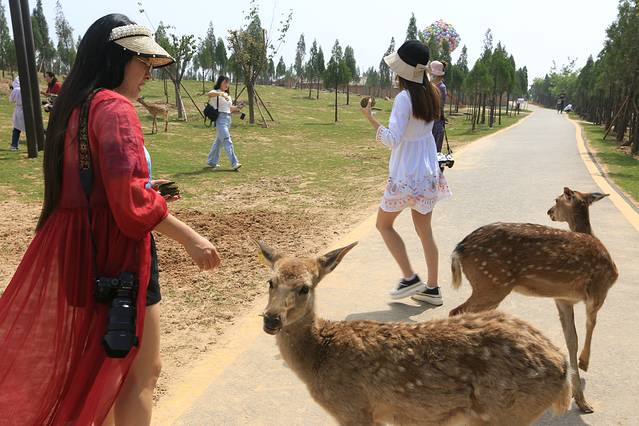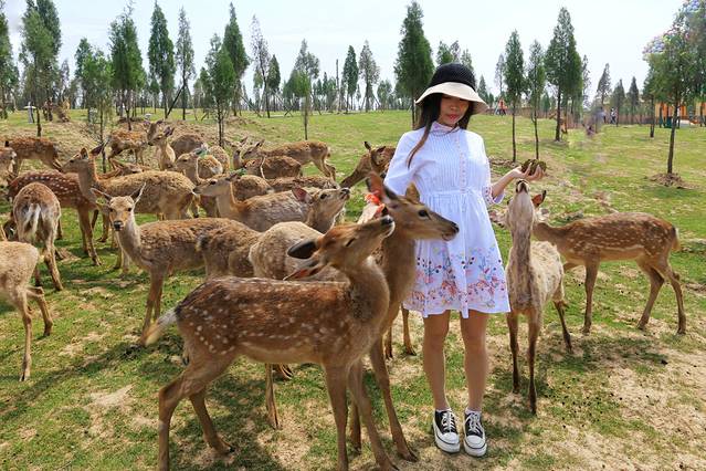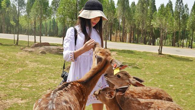 喂小鹿真是太治愈人了。还可以摸摸它们的背,我可喜欢触摸小动物了,柔软的毛毛,让人感到心情愉悦。一边喂小鹿,一边请朋友给拍照,留下快乐瞬间。