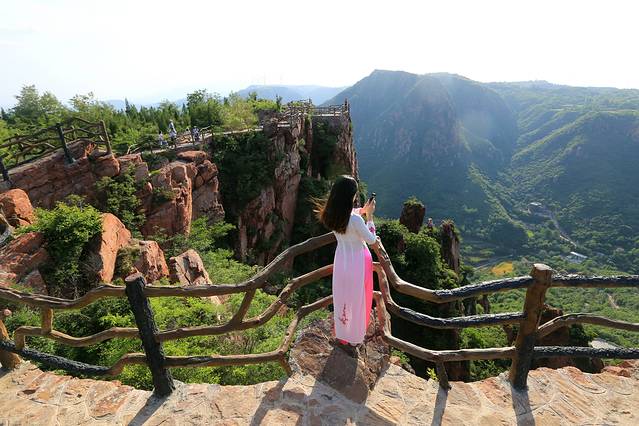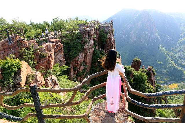 说是爬山,其实呢,都不用爬了,因为出发点已经在 山顶了,在红石林景区,在这里散步没有多大的爬升,非常轻松的走一走悬崖栈道就行了,落差不算太大,很安全 ,还可以欣赏到山间的奇石,险峻的山峰。这样的旅程真的好轻松。