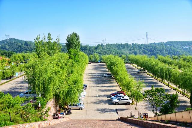 伏羲山停车场,一片绿荫呀!停好车,爬个几十节台阶就到景区门口了。面对景区门口,左手边有一间小超市,忘带的东西可以去这里买,零食饮料都有,价格非常合理。