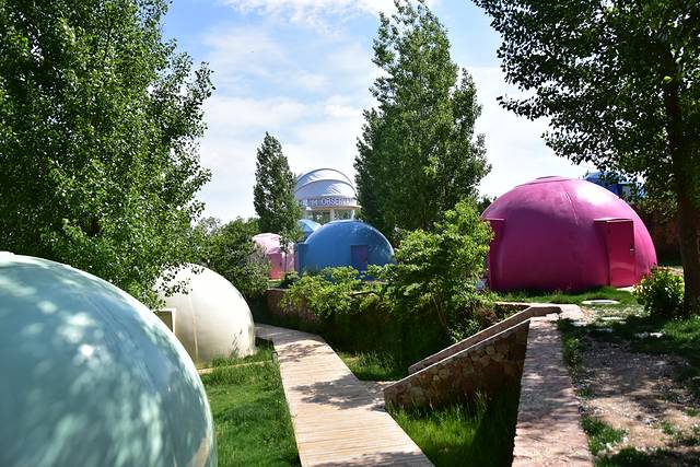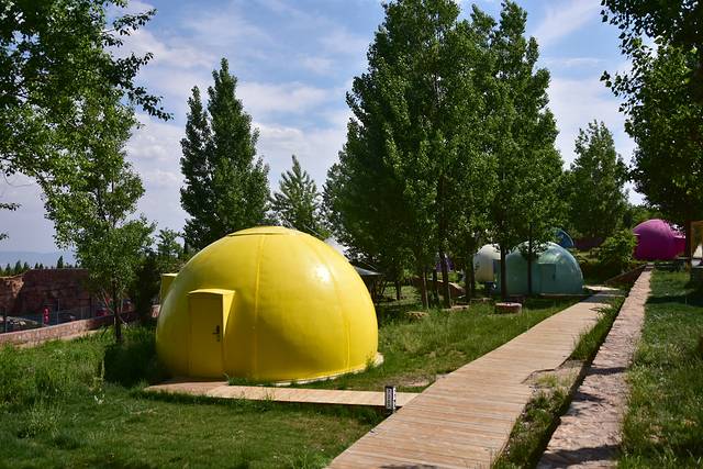 伏羲山景区里面有个星空营地,这是一个比较特别的酒店,因为他家的房子都是独立的一间一间的分布在山顶上,一共也才二十多间,有玻璃星空房、太空舱、帐篷房、贝壳房、石头房,住在这里感觉比较特别,跟普通酒店还真不一样。