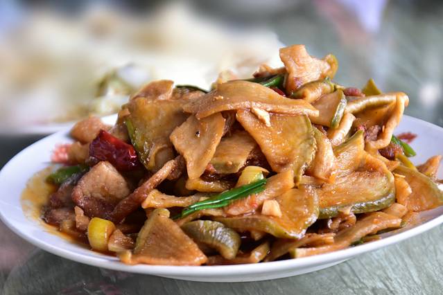 逛完风景优美的伏羲山三泉湖景区,在附近找了一个农家院吃饭,就坐在大棚下边,吃着地道的当地菜:清炖柴鸡、萝卜干炒肉、手工饺子、烙馍、韭菜炒蛋、炒南瓜丝,这个烙馍真是不错,趁热特别好吃,吃两个当主食就饱啦!