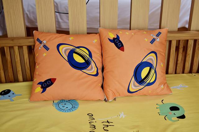 沙发上的抱枕,都是宇宙主题,还选了和房间一样的颜色,这是我只想了那个粉红色的太空舱,是不是有粉红色的抱枕呢?
