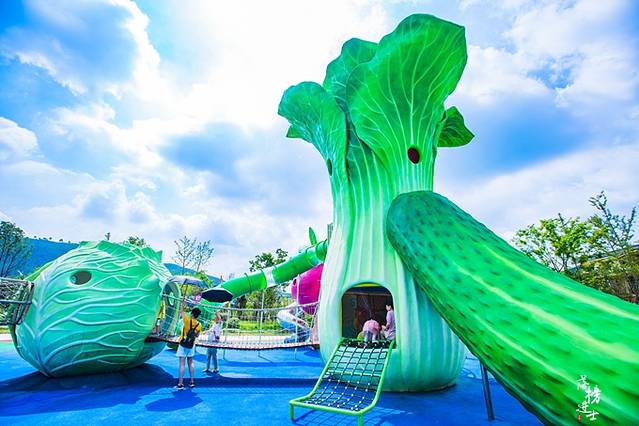 滑梯大家都不陌生,但黄瓜、卷心菜这样造型夸张的蔬菜滑梯你见过吗?在这些巨大逼真的蔬菜世界中,小朋友玩得不亦乐乎,就连大人都忍不住想去探索一下。