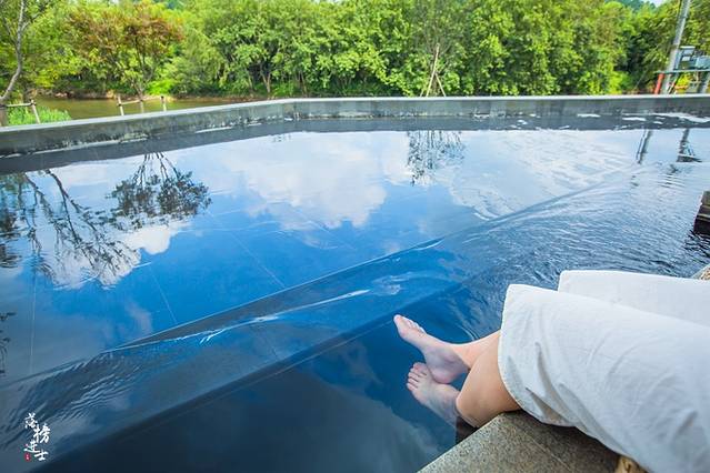 走进度假区,身心瞬间放松下来,随着脚步前行,眼前景色如画布般徐徐展开。不知不觉中,每一寸疲倦和不安都悄悄流逝。温泉水清澈透亮,一波波轻悠悠荡上来,像温柔的手抚慰着疲惫的心灵。