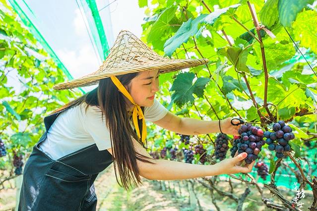在6月份,这里还会举办全南葡萄采摘节。在园区我们可以看到有醉金香、巨峰、阳光玫瑰等品种。尤其是巨峰葡萄的原始香气和口感,得到顾客的一致好评。