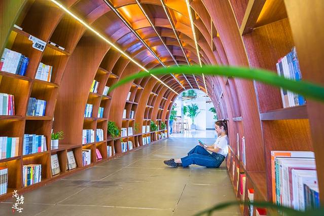 圆形隔断颇有苏州园林的建筑美感,一个个弧度延续下去,延伸出无限空间,似乎也给了人许多遐想的余地,仿佛文字之美,每一字每一句都承载着无限美学。当人们翻阅时,总能心生感动。