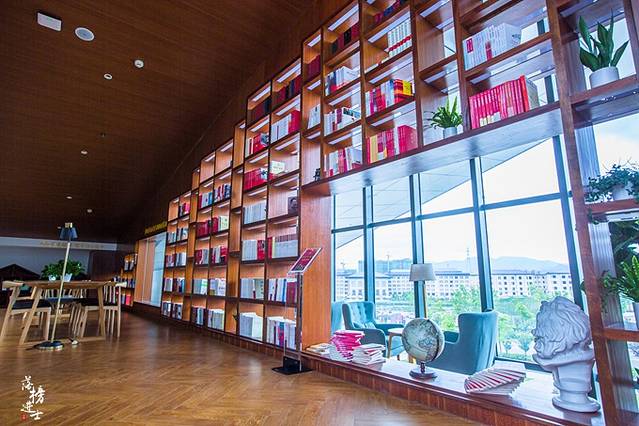 这里的书籍虽然很多,却并不显得拥挤,高大的隔断后就是通透巨大的落地窗。站在窗前,视野毫无障碍,全南这座小县城的身姿可见一斑。