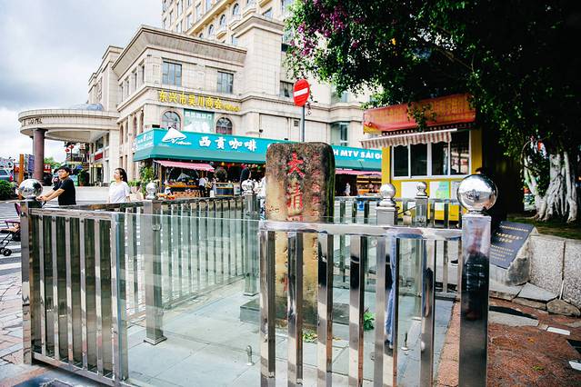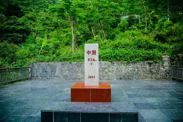大清国五号界碑, 已有100多年历史。根据史料记载,1885年6月9日,清政府与法国于天津签订了《中法越南条约》,承认法国占领越南。之后,中法双方派员勘定边界事宜。防城(清时辖东兴)与越南边界全长200多公里,全段以石碑为标志,立碑1至33号。立在岸上的大清国五号界碑,单面刻字预示着外面的水域还有一部分是我们的国土,这就是以河道为界和以陆地为界划界立碑的区别所在。以山岭为界则双方共立一界碑,一面书&大清国钦州界&(当时防城属钦州府辖),一面书&大越&(即越南)。