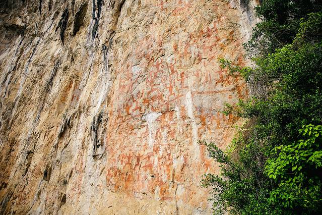 这里是崇左zui有名的景点,必打卡,广西的物质文化遗产⛰现在已经有1800-2500年历史了。各种呈土红色的图画,人物形象有佩刀剑的,有戴桂冠的,可以发挥自己的想象力;最大的画面宽约44米,长170米;岩画是骆越人用来镇河妖,祈求风调雨顺的意愿;