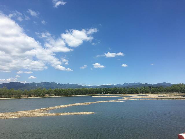 购票上交通车,沿着龙门水库,蓝天白云,远处的山,近处的水,难怪顺治皇帝看上这块风水宝地的。