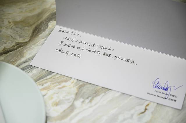 酒店拥有293间客房和套房,每间房都有着不同的设计,简约的设计理念,融合了“新”的鹏城元素,彰显鹏城特色。客房内的装饰很温馨,也很用心,如桌面上写的欢迎卡,水果篮子等等,瞬间让人有种宾至如归的感觉,幸福感倍增。