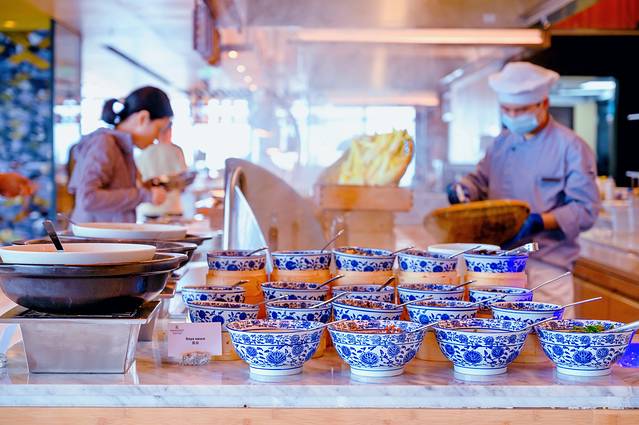 来到57层的“燃”全日餐厅,很是惊喜,菜品丰富多样。每个时段都为客人提供自助餐,总共划分9个不同类型的美食区域,满足不同客户的需求。