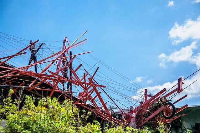 走在园区内,每一处锈迹斑斑的窗棂,仿佛诉说着过往的故事;看着陈旧的物件,瞬间唤醒童年的记忆;那些简陋的旧厂房改造的“艺术品”,像似设计师给披上了一件件简洁而又华丽的衣裳......