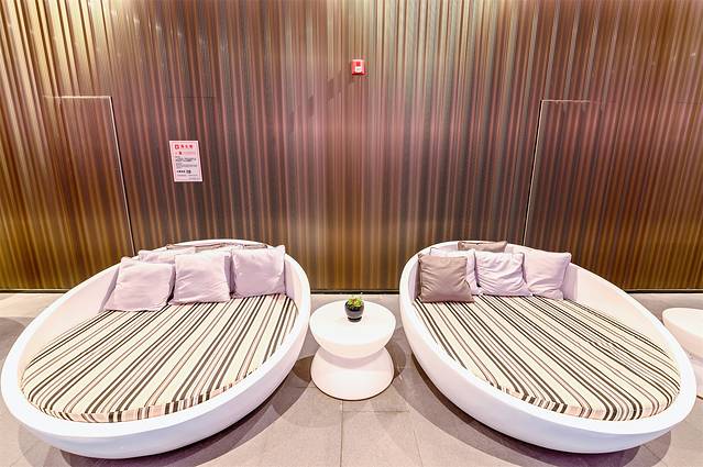 窗台上装置了榻榻米休息区,可以坐上面看城市夜景,观对岸的香港风光,觉得这样的休息区仿佛就是为私人量身打造。