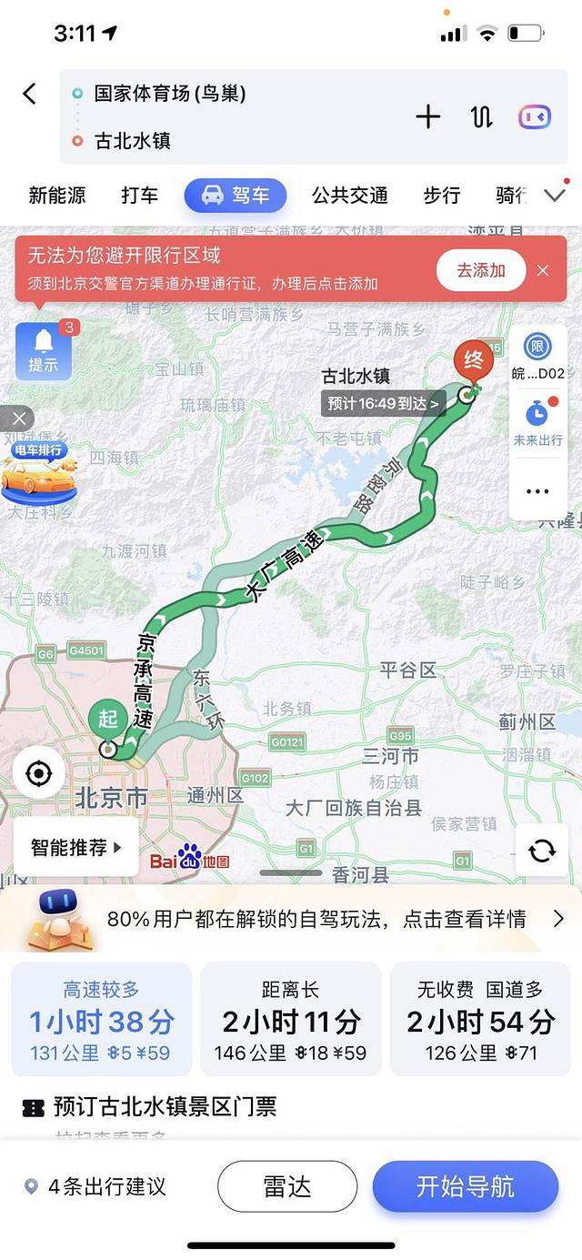 自驾从北京上京承高速到古北水镇景区入口下就行了,行程约1.5小时。(自己导航看看)来去自由。时间由你自己安排