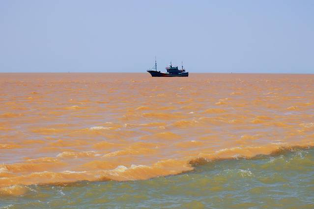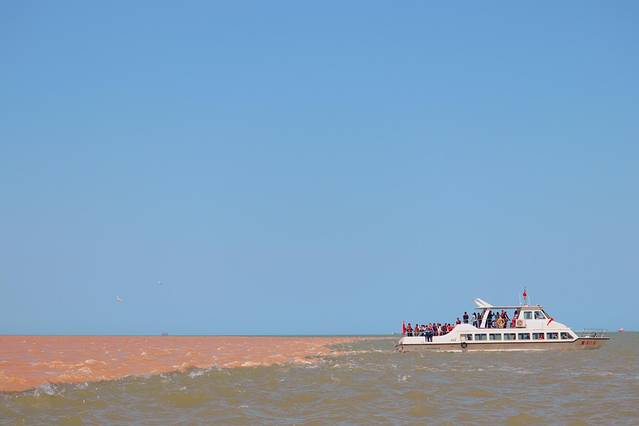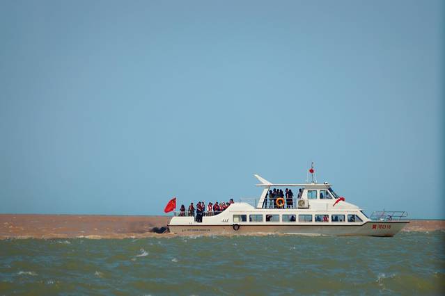 乘船在黄河宽广的河道行驶约一小时,抵达黄河入海口,雄浑的黄河与蔚蓝的大海在此相拥,黄河浑黄,大海蔚蓝,这泾渭分明的色彩令人叹为观止,啧啧称奇,这种纯自然的“河海交汇”奇观是来东营最不可错过的地方。