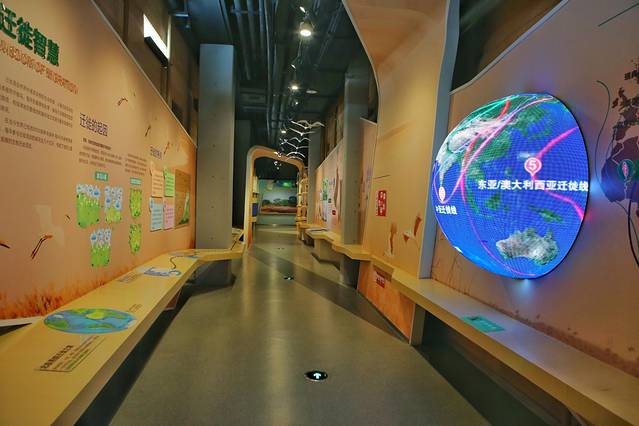 馆内的四大主题展厅分别是“大河息壤——共生厅”、“候鸟驿站——共鸣厅”、“鸟国探秘——共赏厅”、“鸟类天堂——共享厅”依次走下来,细细看一遍,估计得两个小时。