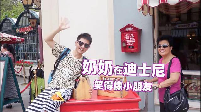在迪士尼,奶奶虽然很多项目不能玩,但也不妨碍她开心得像个小朋友,和不同的卡通人物照相,在每个景点凹造型,一同前往并充当我们摄影师的香港好友番薯一个劲称赞奶奶健步如飞。