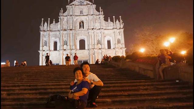 夜幕下的大三巴,被我和奶奶包了场,月光如水洒在牌坊上,奶奶细细看过每一个栩栩如生的雕像。