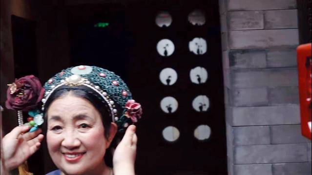 当奶奶套上深蓝色绣着凤的长袍,再带上发饰头饰和步摇之时,真的像极了一位慈祥和蔼又庄重的老佛爷。