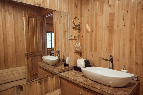 床品和以往酒店的不同,不是纯白色的床单,是麻布床单,与木质结构的房间搭配,让人更加的舒适,没有了在城市酒店的那种冷漠的颜色,回归了最质朴的生活,更加的踏实。
