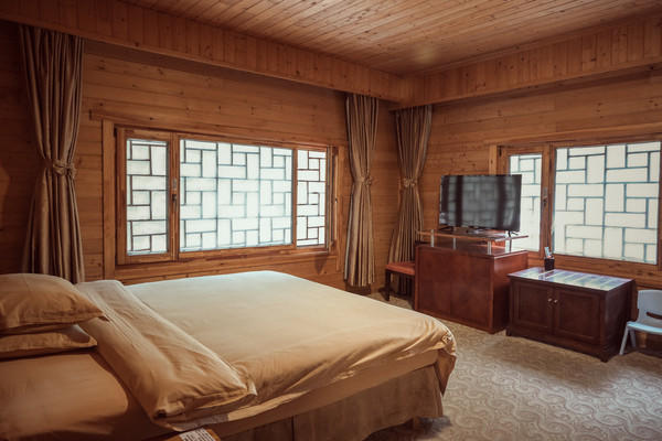 咖色木头构造的房屋,使人更加安静,更加的贴近原生态贴近大自然。
