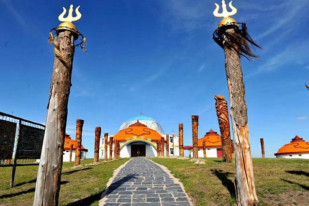 上午游览俄式婚礼宫大觉禅寺 猛犸象故乡,美丽神圣的呼伦湖。中午全鱼宴。
