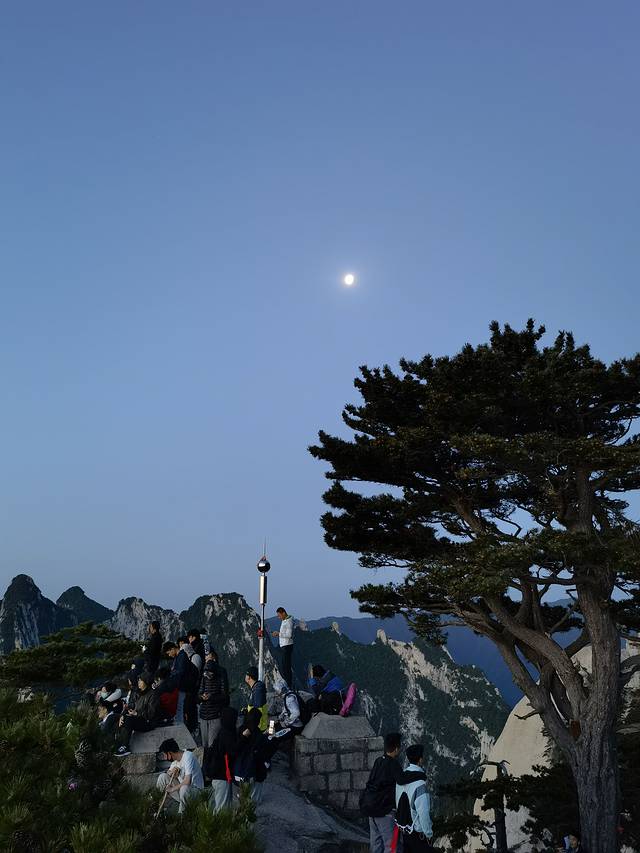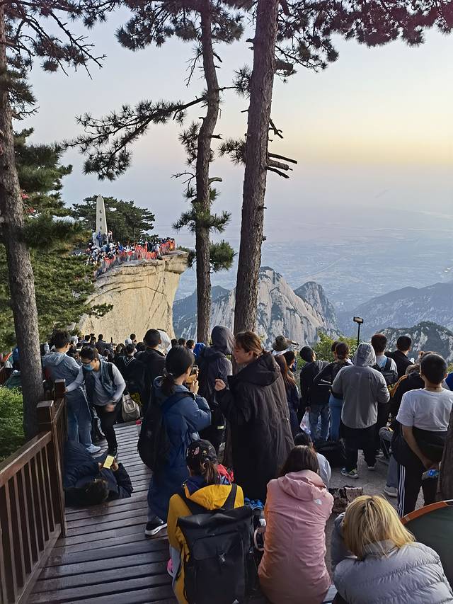 晚上住东峰宾馆,今天白天时间很宽裕。早7点正式开始爬山,10点50分到北峰,刚好吃个午饭,12点10分离开北峰往上走,13点40到金锁关,14点10分到东峰宾馆入住,溜溜达达7小时登顶,很轻松。宾馆稍事休息,16点出发赴南峰,西峰看日落,美景相伴,轻松愉快。鹞子翻身和长空栈道都需要排队,没去凑热闹。