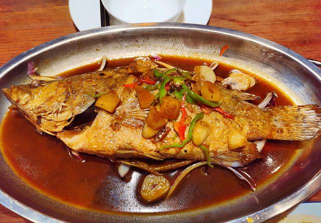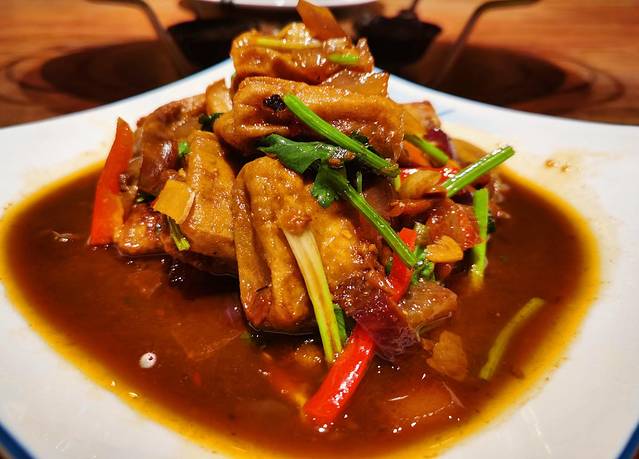 菜单就在墙上,我们点了臭鳜鱼、毛豆腐、黟县野菜等众多特色菜,