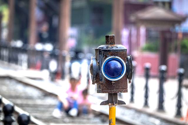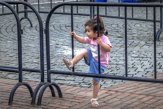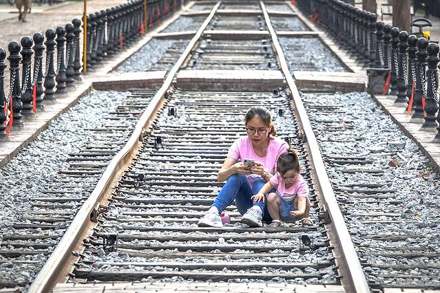 商铺没开业前,这里是少有的宁静。平时,很多家长带着孩子来这里玩。一个石子,一块枕木,一段铁轨,一支围栏,都会给孩子们无尽的乐趣。