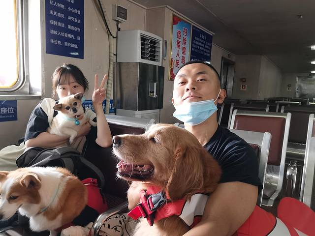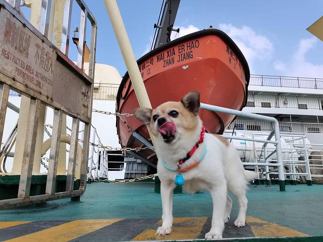 狗狗是不用买船票的,可以选择让她留在车里也可以带进船舱