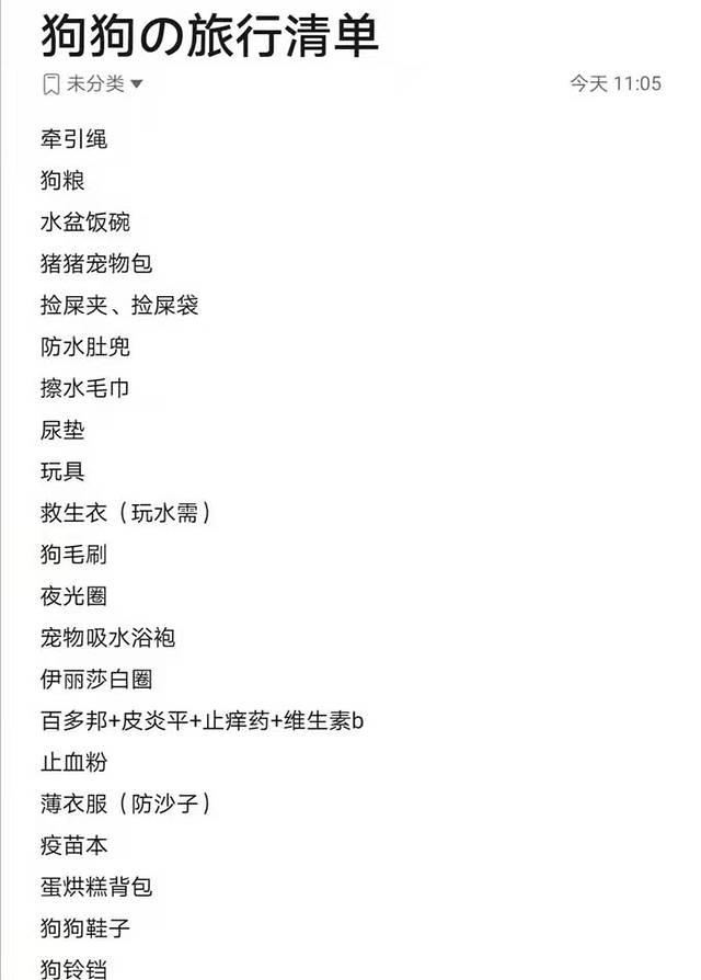 因为刚好出行前狗狗有些皮肤破损,所以这个清单里有一些只刚好适配这次家里狗狗情况的物品,除此之外的其他东西都是针对带狗狗 自驾必不可少的东西。