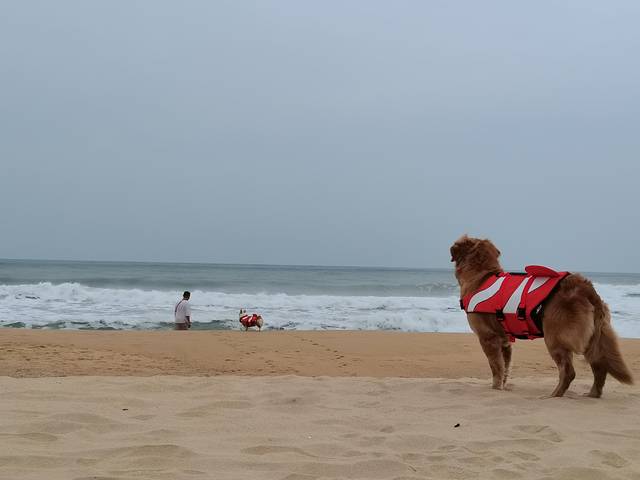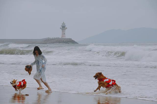 第一次见到大海的狗子们撒开了腿的玩嗨了