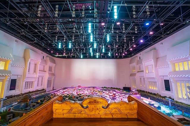 这里有城、这里有街、这里有宅。公元1415年,京杭大运河开凿了一条不平常的河道,这才有了闻名遐迩的清江浦的现在和未来。大型沙盘展示着明清时期清江浦的全貌,高大的城墙四通八达的街道,往昔热闹的运河之都仿佛就在眼前。