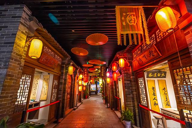在这条仿古街道,你能看到当时清江浦人生活的方方面面。繁忙的码头和车马店,林立的老字号粮行、盐栈,洪门寺豆制品店铺,仁德生中药铺,庆生钱庄,清江浦电报局,鼎大绸缎庄和稻香村食品店,清江浦花街,江北大学堂,老半斋酒楼……柴米油盐、婚丧嫁娶都用了非常真实的雕塑和场景进行展现。