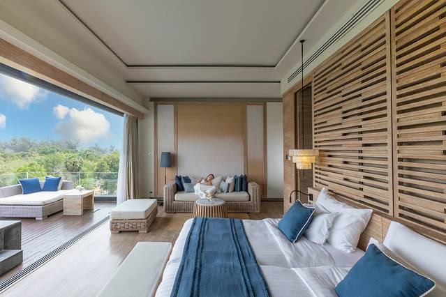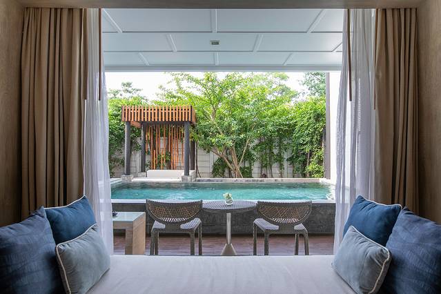 本次入住的凯璞丽拉酒店同样位于华欣海滩,酒店将迷人的自然风光与现代舒适的装饰风格及设施完美结合,简明的镂花木窗、素雅的藤制沙发,每间客房内都设有私人泳池,并配备了电视、迷你吧、茶咖啡冲泡设备等生活设施。
