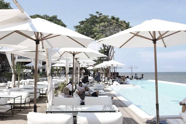 「海滩文青广场」同样位于华欣海滩,是一个集文青咖啡店、户外休闲、旅社、服饰店、酒吧等为一体的复合式广场,以水泥混凝土的「清水模」为建筑风格,充满了文青极简感,搭配大量的植物,在海景的衬托下每个角落都可成为拍照的最佳背景,深受观光客喜爱,热爱文青风格的游客,可来华欣海滩享受海风,与创意商店挖宝!